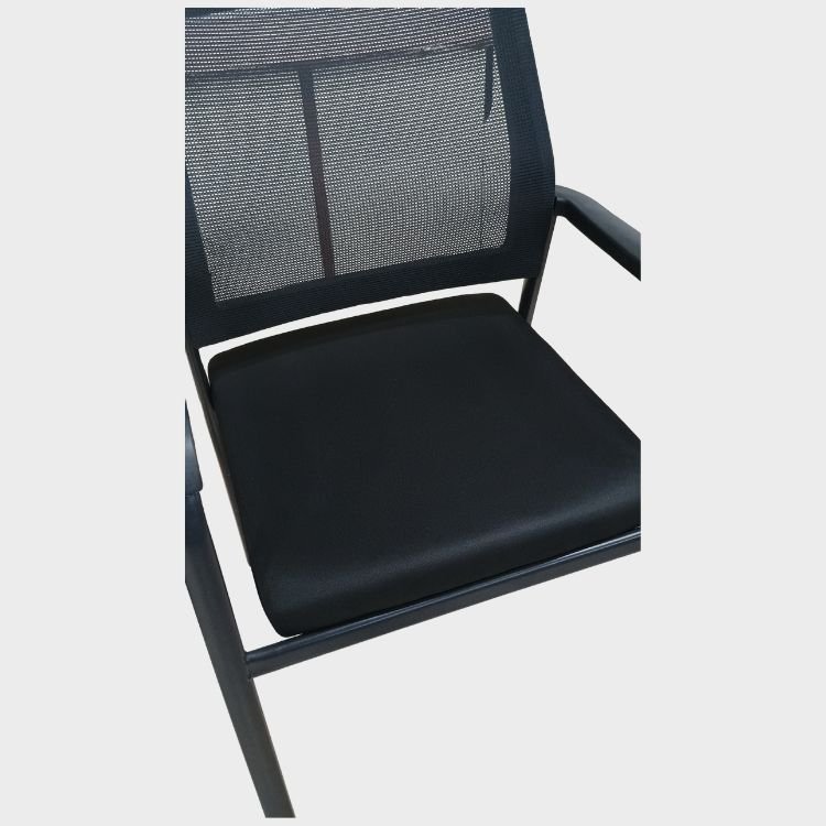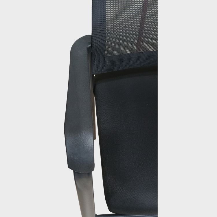 Asiento y Espaldar en Tela Malla. Apoya Brazos Fijo. Base Metálica.